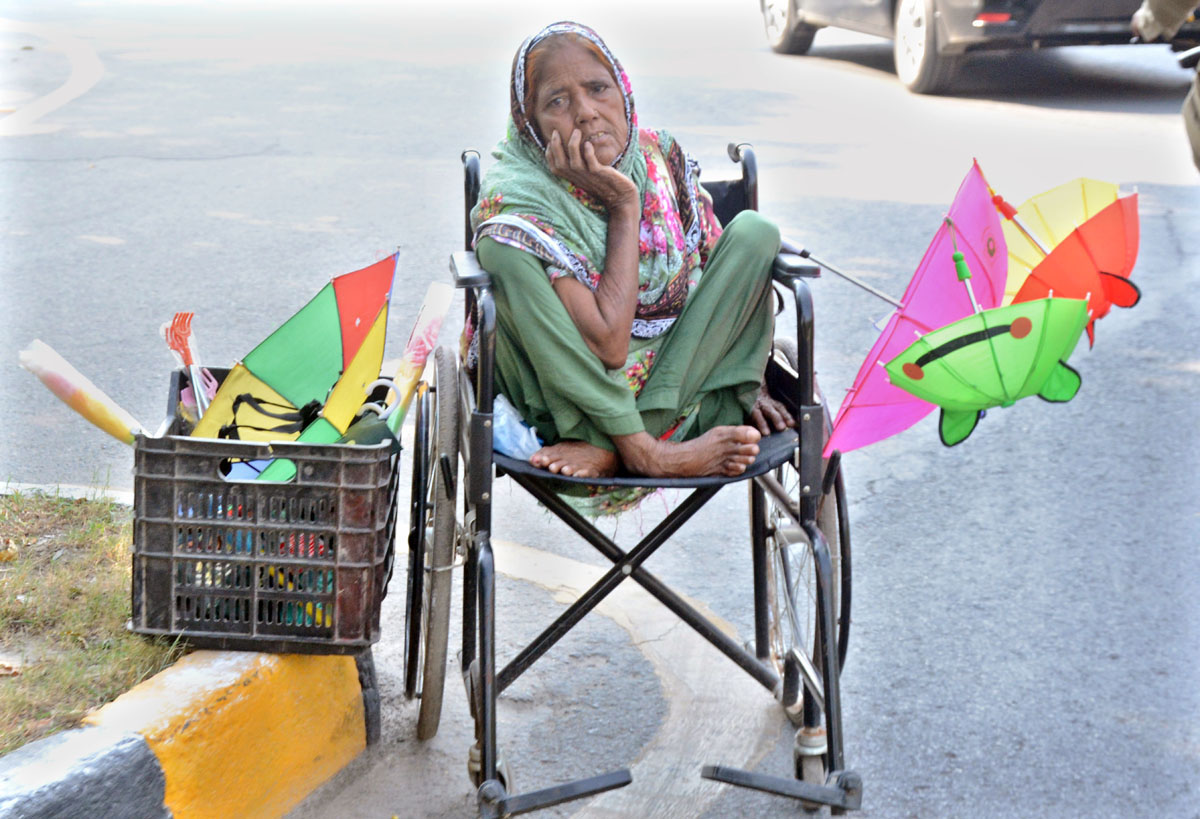 An elderly female vendor selling umbrella for livelihood at roadside. APP29-220424LAHORE: April 22 Previous Post Talented painter applying artwork to bring life on the historical wall of Daulat Khana at Shahi Qilla. Next Post A view of massive traffic jam in front of High Court.