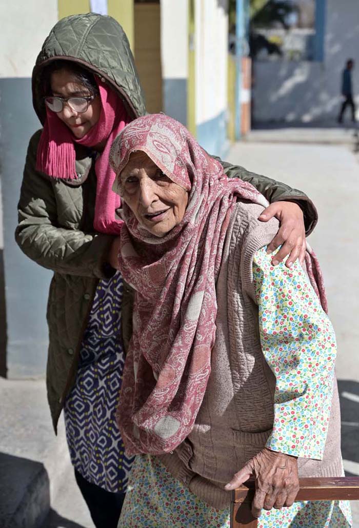 ISLAMABAD: February 08 – An elderly person casts his vote at polling station during General Election-2024.