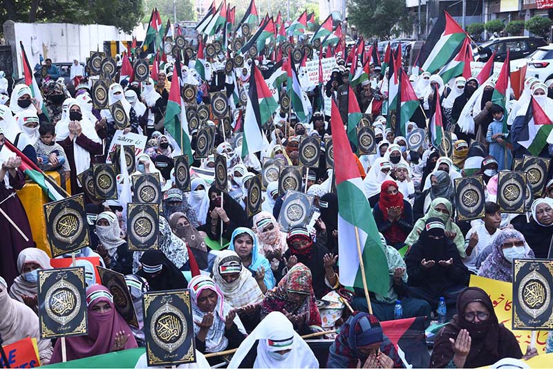 KARACHI: November 11 – Anwaar Habib Academy organizes Dukhtar-e-Islam rally in support of Palestinians at Press Club. APP/SDQ/ABB/ZID