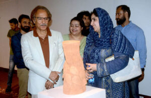 LAHORE: May 14 – People viewing art exhibition at Alhamra Academy of Performing Arts.