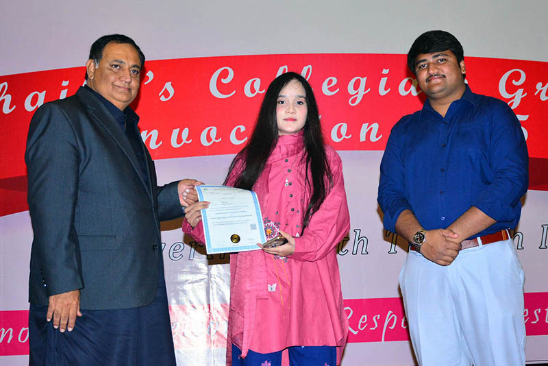 Assistant Commissioner Latifabad, Mr. Saud Lund, presents certificates to graduate students during the Shaikhs Collegiate Grand Convocation 2025 at Shaikhs Collegiate Institute of Information Technology, held at Mehran Art Council