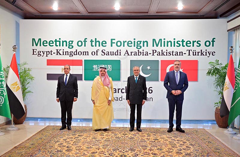 At the opening of the Quadrilateral Consultations in Islamabad on 29 March 2026, the Foreign Ministers of Pakistan, Saudi Arabia, Türkiye, and Egypt pose for a family photo. APP33-290326ISLAMABAD: March 29 – Previous Post IESCO recovers billions from defaulters, intensifies crackdown nationwide Next Post The Quadrilateral Consultations among the Foreign Ministers of Pakistan, Saudi Arabia, Türkiye, and Egypt.