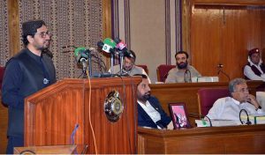 Balochistan Minister for Finance Mir Shoaib Nosherwani presents the provincial budget for fiscal year 2025–26 at the Balochistan Assembly