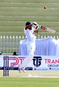 Bangladesh batter Najmul Hossain Shanto in action during the 3rd day of the 1st Test cricket match playing between Pakistan and Bangladesh at Pindi Cricket Stadium