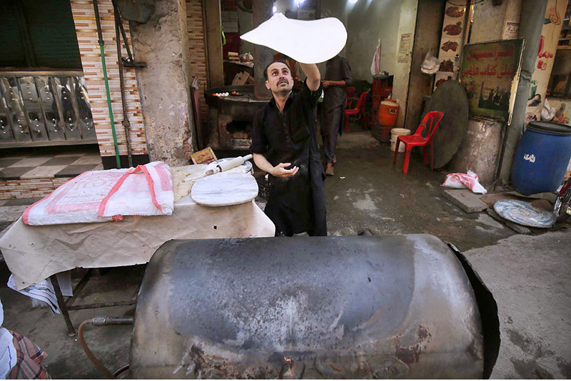 Bread maker prepares traditional roti, locally called “chapati,” for customers at Fawara Chowk.