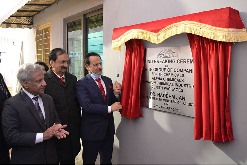 LAHORE: January 22 - Caretaker Federal Minister for Health Dr. Nadeem Jan unveiling plaque during ground breaking ceremony of pharma manufacturing unit at Sundar Industrial Estate. APP/MHA/FHA