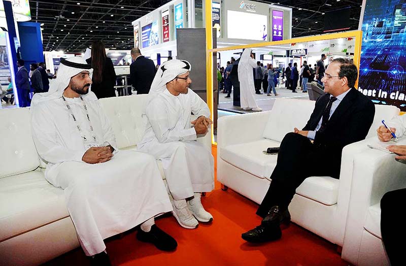DUBAI: October 18 - Caretaker Federal Minister for IT and Telecommunication Dr. Umar Saif in a meeting with Dr. Mohamed Al Kuwaiti, Head of UAE Cyber Security, at GITEX Global 2023. APP/ABB