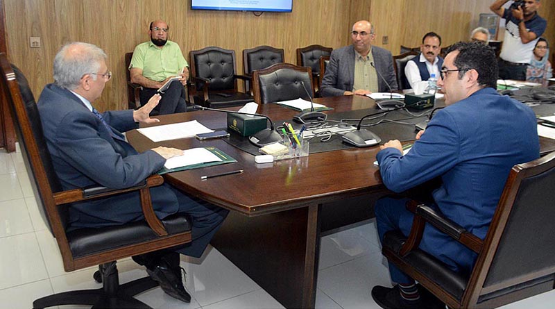 Caretaker Federal Minister for Planning and Development Muhammad Sami Saeed chairing a meeting to review social sector initiatives