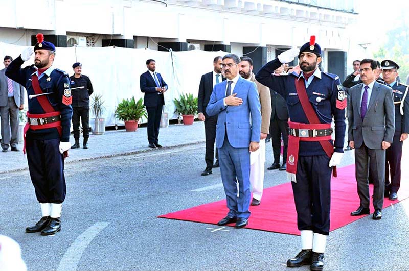 ISLAMABAD: December 11 – Caretaker Prime Minister Anwaar-ul-Haq Kakar being presented guard of honor by a contingent of Islamabad Capital Territory Police upon his arrival at the Ministry of Interior, Pak Secretariat. APP/TZD/ZID