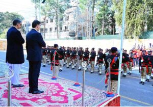 Caretaker Prime Minister Anwaar-ul-Haq Kakar being presented guard of honor upon his arrival at AJK Legislative Assembly