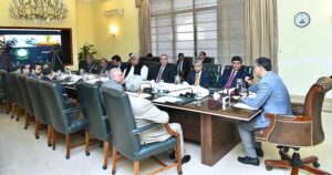 Caretaker Prime Minister Anwaar-ul-Haq Kakar chairs a briefing on decline in prices of essential items as a result of reduction in the prices of petroleum products