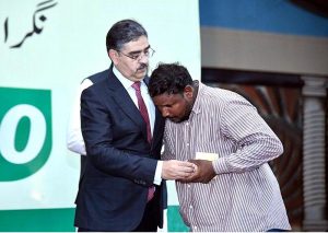 Caretaker Prime Minister Anwaar-ul-Haq Kakar distributes cheques of 2 million rupees each to individuals from the Christian community whose residences were damaged due to mob violence in Tehsil Jaranwala