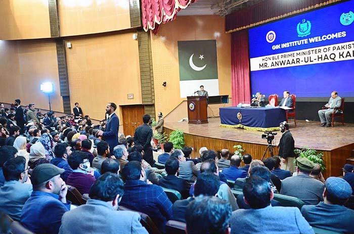 Caretaker Prime Minister Anwaar-ul-Haq Kakar interacts with the students of Ghulam Ishaq Khan Institute of Engineering Sciences and Technology.