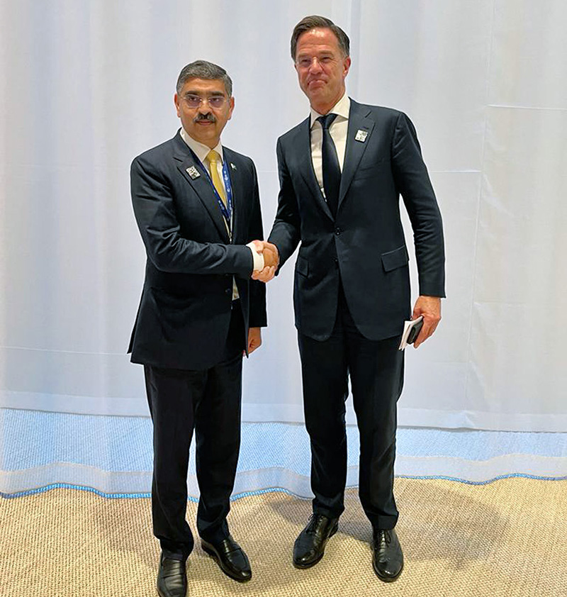 Caretaker Prime Minister Anwaar-ul-Haq Kakar meets the Prime Minister of Netherlands Mr. Mark Rutte on the sidelines of the high level segment of the UN’s 28th Conference of Parties