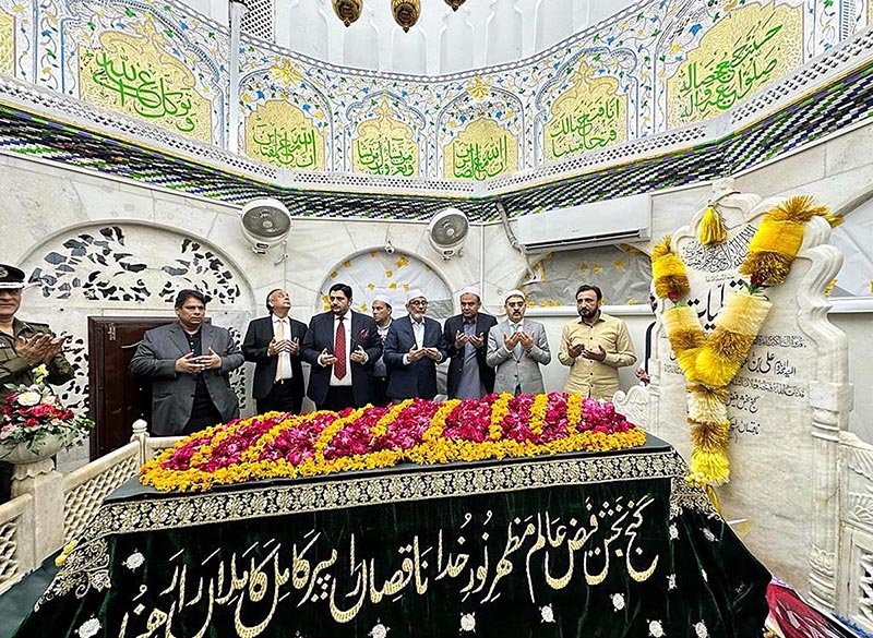 Caretaker Prime Minister Anwaar-ul-Haq Kakar offers dua at the shrine of Sufi Saint Hazrat Ali Hajveri