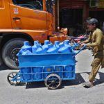 CDA workers busy in cleaning the nullah along Srinagar Highway. APP04-250424ISLAMABAD: April 25 – Previous Post A labourer on the way pushing hand cart loaded with clean drinking water canes to be delivered at shops at Islamabad Fruit and Vegetable Market. Next Post Bisma Maroof retires from all cricket
