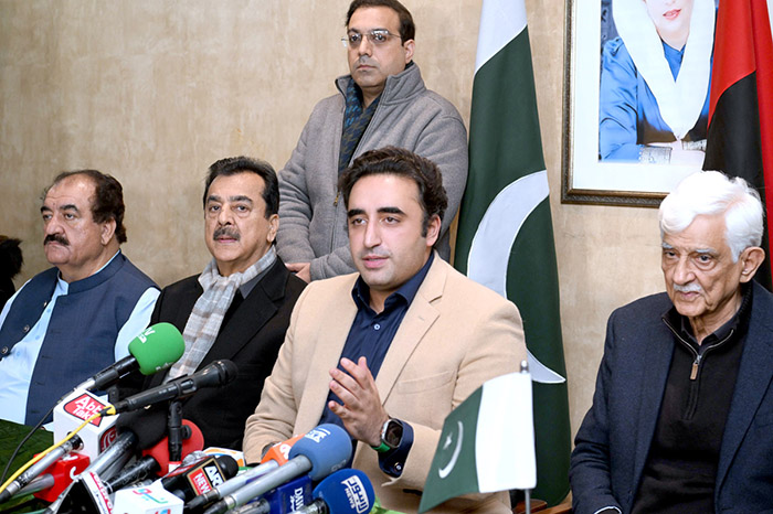 LAHORE: January 03 – President of Pakistan People’s Party Parliamentarians Asif Ali Zardari and Chairman PPP Bilawal Bhutto Zardari Presiding over the PPP CEC meeting at Bilawal House.