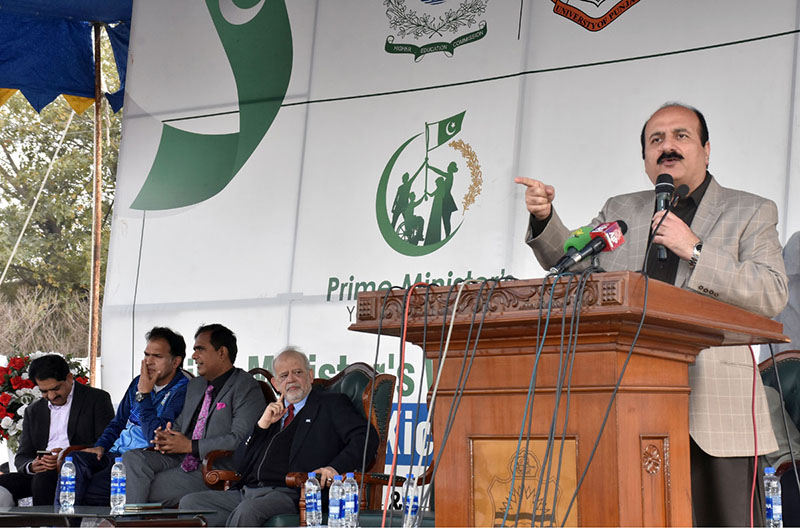 LAHORE: February 11 – Senior journalist and columnist Salman Ghani addresses the audience after inauguration of the PMYP Boxing Kick-off Punjab Drive and All Pakistan Women’s Football opening ceremony at Punjab University New Campus. APP/MHA/FHA