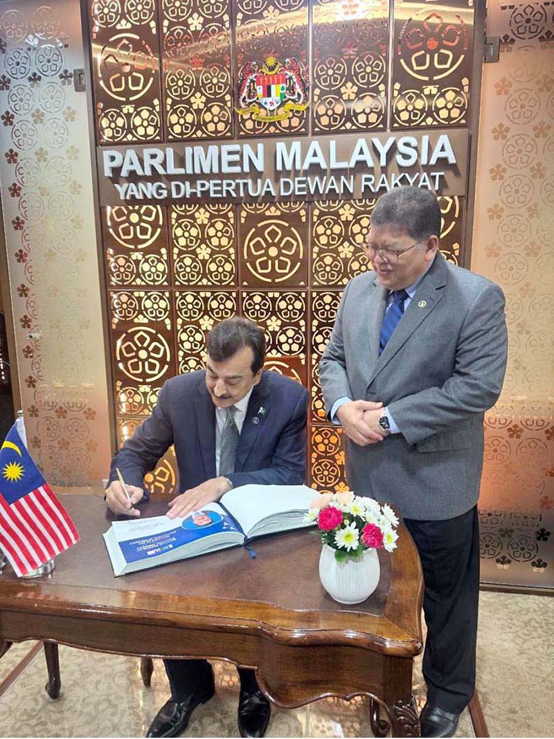 Chairman Senate of Pakistan, Syed Yousaf Raza Gilani recording his comments on visitor’s book placed at Parliament of Malaysia