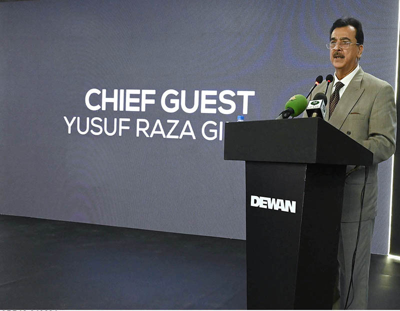 SUJAWAL: June 04 – Chairman Senate Syed Yosuf Raza Gillani addressing during rollout ceremon