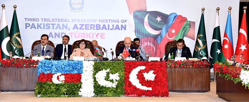 Chairman Senate, Syed Yousaf Raza Gilani addressing as special guest at the inaugural session of the Third Trilateral Speakers Meeting of Azerbaijan, Pakistan and Turkiye at Parliament House