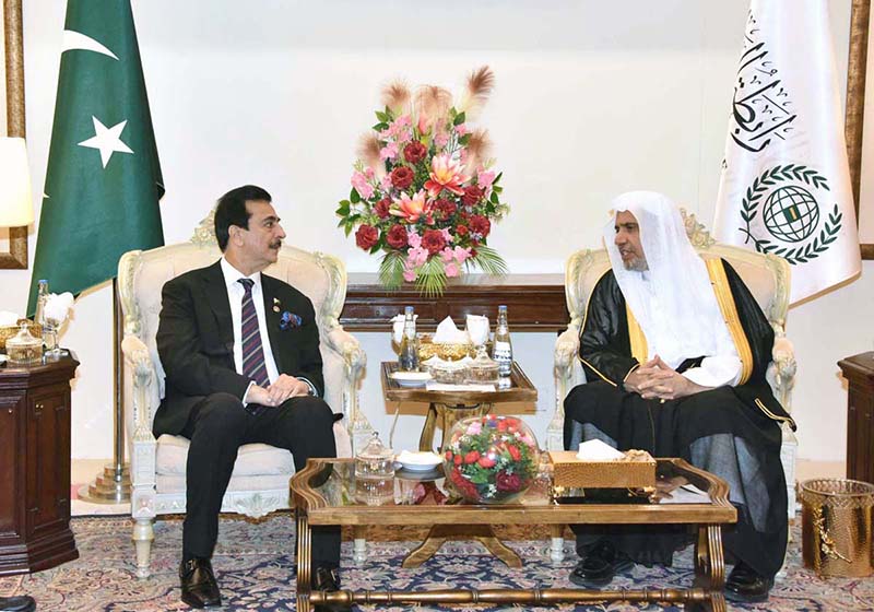Chairman Senate Syed Yousaf Raza Gilani exchanging views with Sheikh Dr. Mohammed Bin Abdulkarim Al-Issa, Secretary-General of the Muslim World League