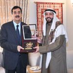 Chairman Senate, Syed Yousaf Raza Gilani shaking hands with president of the Kyrgyz Republic, Sadyr Japarov.