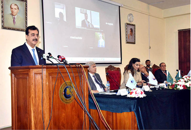 ISLAMABAD: July 22-Chairman Senate Syed Yousuf Raza Gilani in a group photo with the participants of 25th Conference of The Islamic World Academy of Sciences (IAS) in Federal Capital
