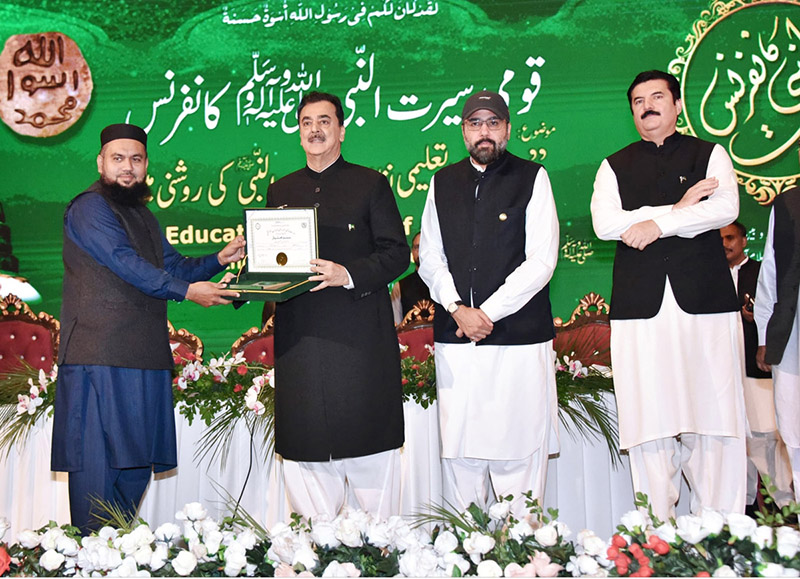 Chairman Senate, Syed Yousuf Raza Gilani handing over awards to winners of the competition in different categories at “Seerat-un-Nabi conference”