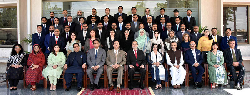 Chairman Senate, Syed Yousuf Raza Gilani in a group photo with the participants of 35th senior management course at National Institute of Management (NIM