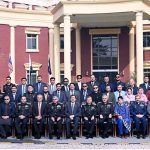 LAHORE: December 12 – Chairman Senate Syed Yusuf Raza Gilani awards certificates of completion to participants of the 8th Maritime Security Workshop (MARSEW-8) at Pakistan Navy War College. APP/MTF/FHA