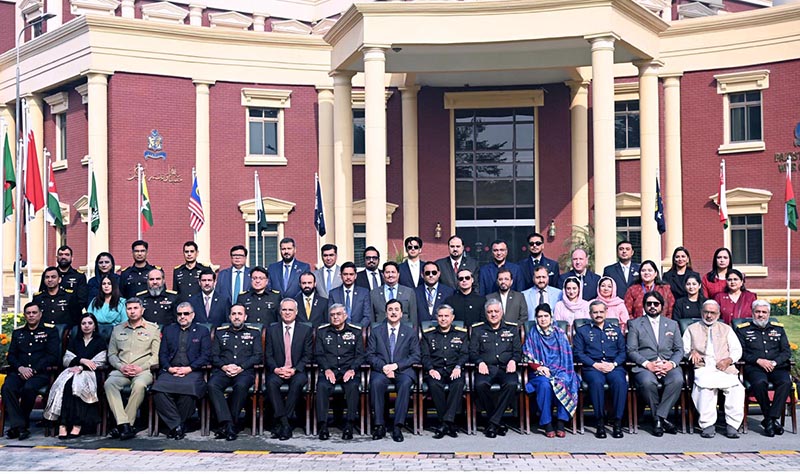 LAHORE: December 12 - Chairman Senate Syed Yusuf Raza Gilani Chief of the Naval Staff (CNS) Admiral Naveed Ashraf NI(M) T Bt in a group photograph with participants after the closing ceremony of the 8th Maritime Security Workshop (MARSEW-8) at Pakistan Navy War College. APP/MTF/FHA