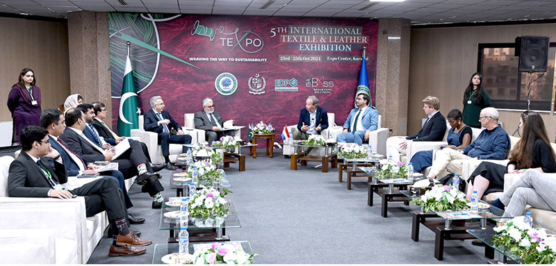 Chairman TDAP Zubair Motiwala meets with a delegation of Italian businessmen, headed by Elia Giansante, on the first day of the Fifth International Textile and Leather Exhibition (TEXPO 2024) at the Expo Center