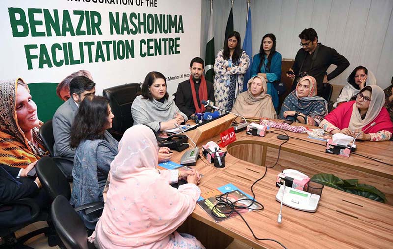 PESHAWAR: February 19 – Chairperson BISP, Rubina Khalid, addresses attendees during the inauguration of the Benazir Nashonuma Facilitation Centre at Molvi Ameer Shah Hospital. APP/SYR/TZD/SSH