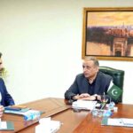 ISLAMABAD: October 08 – Dr. Muhammad Mukhtar, Vice Chancellor, National Skills University is presenting souvenir to Chairperson of BISP Senator Rubina Khalid.