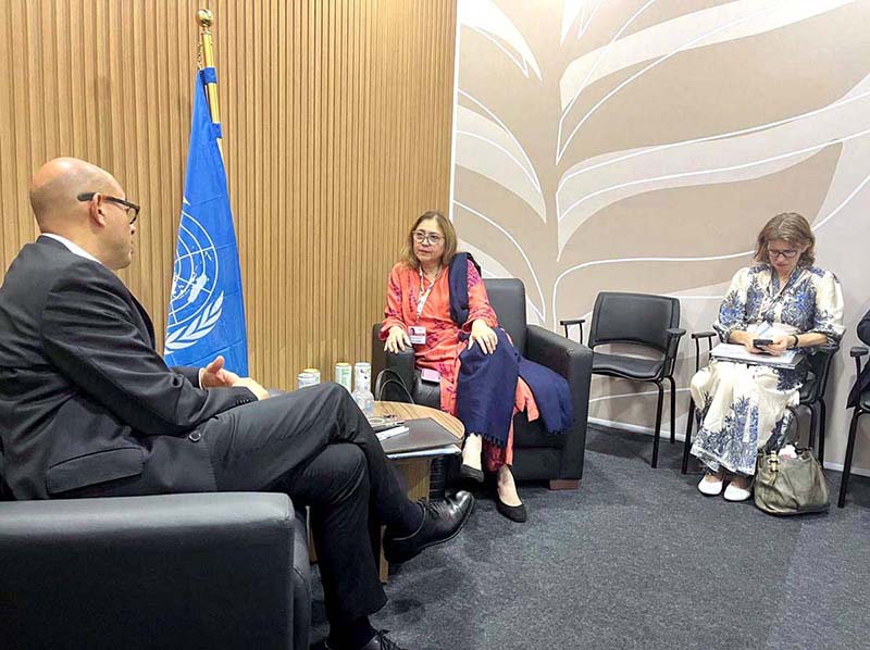 Chief Executive of the UNFCCC Secretariat Simon Stiell calls on Pakistan’s head of delegation to COP-30, Secretary Ministry of Climate Change and Environmental Coordination (MoCC&EC), Ms Aisha Humera Chaudhry at the UN Climate Summit (COP30) venue in Amazonian city of Belem in Brazil