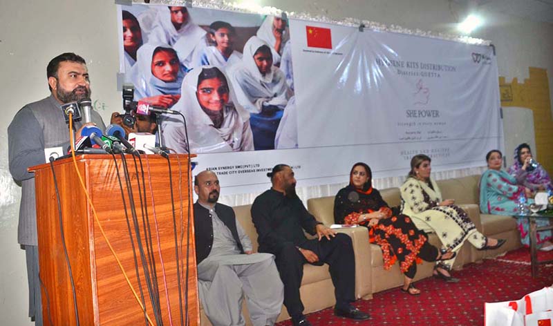 QUETTA: October 08- Coordinator to Prime Minister on Climate Change, Romina Khurshid Alam and Chairperson of Senate Standing Committee on Human Rights, Samina Mumtaz Zehri, along Chief Minister Balochistan Mir Sarfraz Bugti distributes hygiene kits under the ‘She Power’ initiative at Govt Girls High School, Jinnah Town, in the provincial Capital.