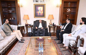 Chief Minister Sindh Syed Murad Ali Shah, calls on President Asif Ali Zardari, at Aiwan-e-Sadr. Chairman Pakistan People’s Party and MNA, Bilawal Bhutto Zardari, is also present in the meeting.