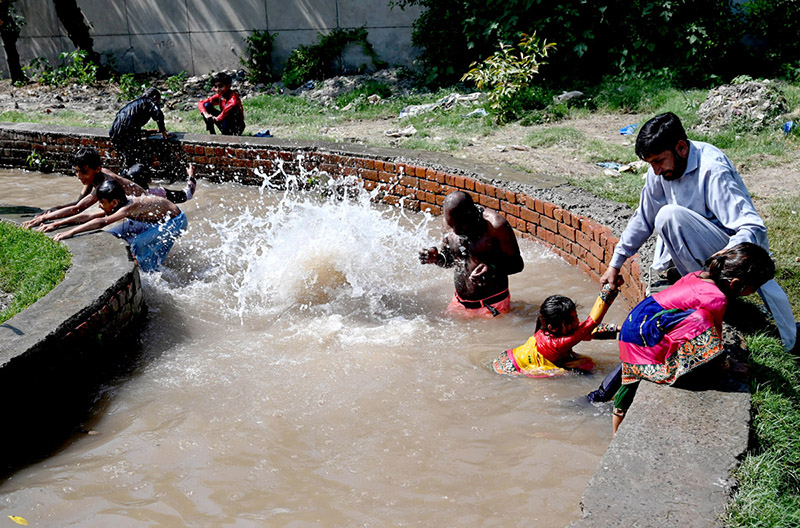 Children enjoy bathe in the canal during a hot day in the city. APP29-230325LAHORE: March 23 – Previous Post A worker prepares hand-made stools at his workplace. Next Post A PHA worker is preparing Pakistan flag with fresh flowers on Pakistan Day celebrations at Cherang Cross.