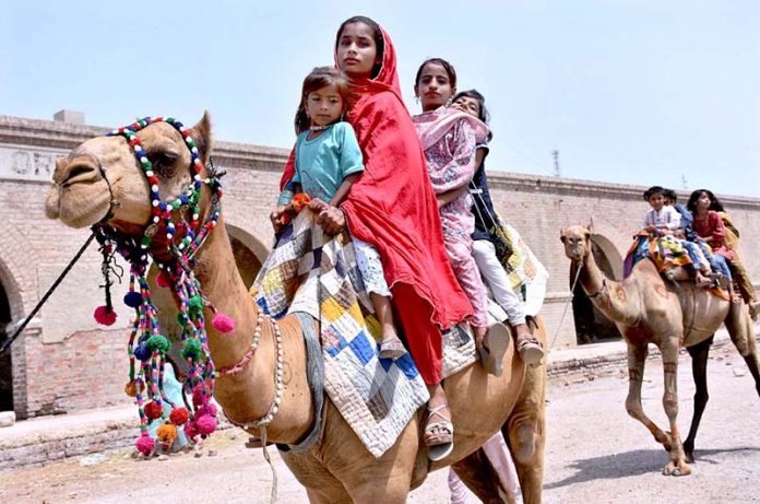 Children enjoying camel ride during the 1st day of Eid Ul Azha near Railway Station