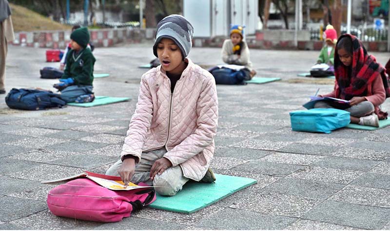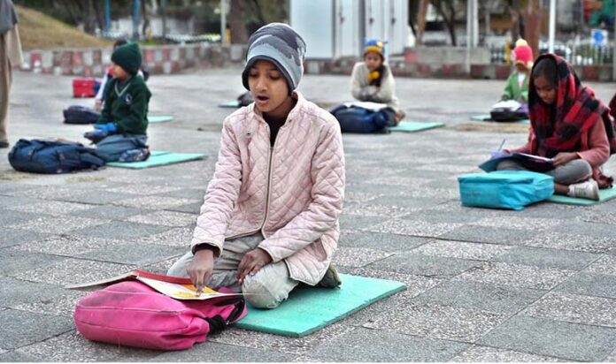 ISLAMABAD: January 23 – Children from slum area getting education by a volunteer teacher at an open area in F-6 while the world observes International Day of Education. APP/IFD/MAF/TZD/ABB