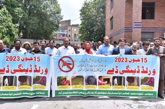 FAISALABAD: June 15 - Commissioner Silwat Saeed along with Deputy Commissioner Ali Anan Qamar participating in an awareness walk in connection with World Anti Dengue Day at Municipal Corporation. APP/TWR/ABB/TZD