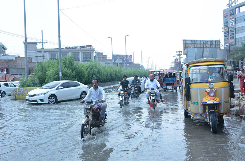 Commuters passing through sewerage water accumulated at Sheikhupura Road near Misaq Ul Mall need the attention of concerned authorities.