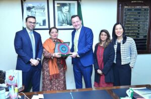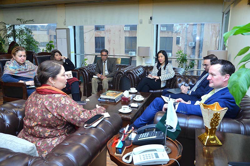 ISLAMABAD: March 03 – Coordinator to the Prime Minister for Climate Change, Romina Khurshid Alam speaking with a delegation headed by Jamie Fergusson, Global Director for Climate at the International Finance Corporation (IFC), during their visit to her office. APP/MAF/FHA