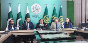 Coordinator to the Prime Minister on Climate Change & Environmental Coordination, Romina Khurshid Alam addresses a press conference on ‘ Recharge Pakistan Project’ at the PTV Headquarters.
