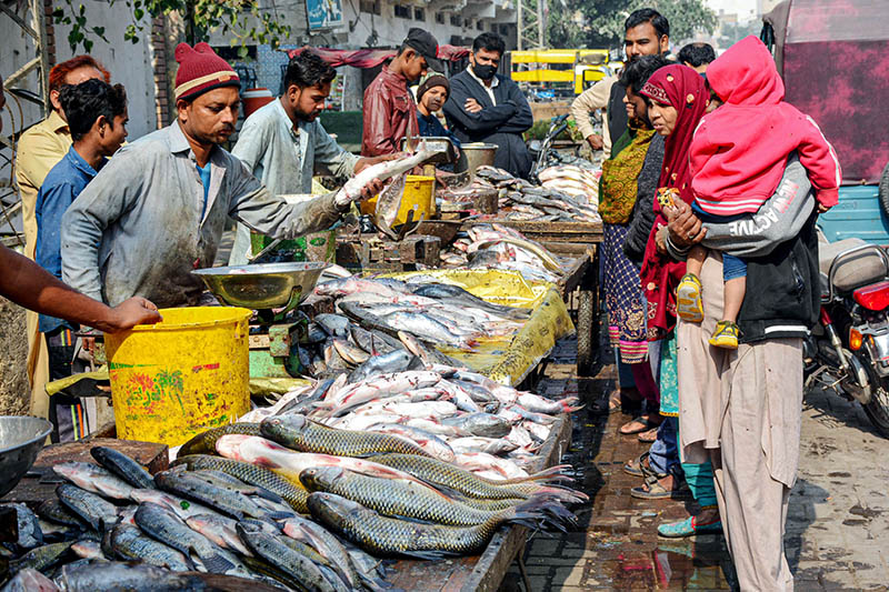 HYDERABAD: December 24 – Customers selecting and purchasing fishes from the roadside vendors. APP/FHN/ZID