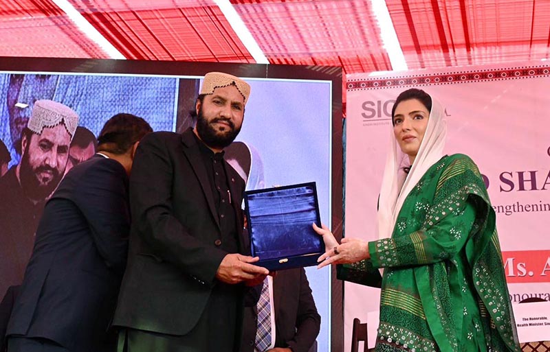 December 20 – First Lady Bibi Aseefa Bhutto Zardari, MNA presenting commemorative shields to philanthropists Chaudhry Muhammad Zafar Arain and Mr. Azeem Mughal in recognition of their donation of the hospital building and commitment to support the upcoming surgical block of Sindh Institute of Cardiovascular Diseases (SICVD).