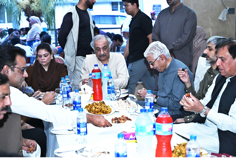 Defense Minister Khawaja Muhammad Asif attends a public Iftar at the Allama Iqbal Government Teaching Hospital Organized by Chaudhry Arshad Warraich Foundation. APP/MUT/ABB