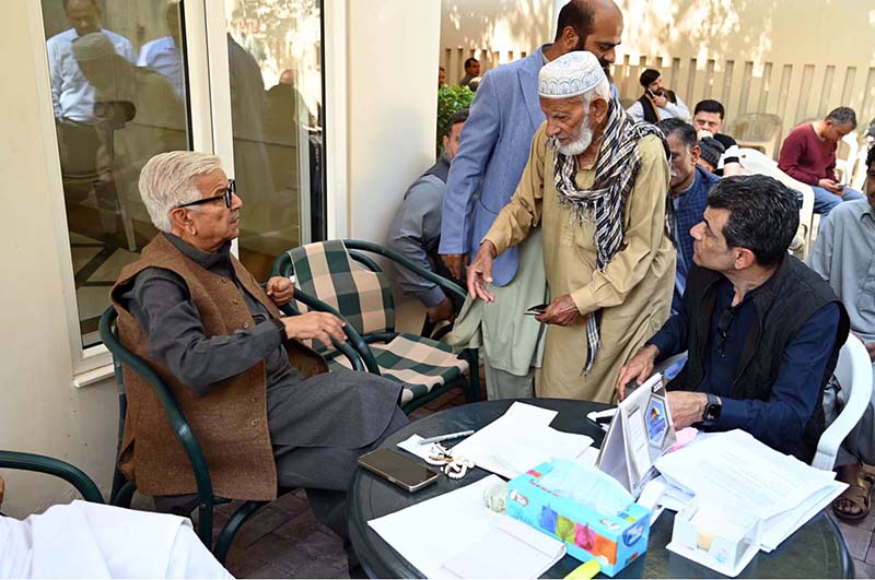 Defense Minister Khawaja Muhammad Asif attentively listens to people’s concerns at his residence