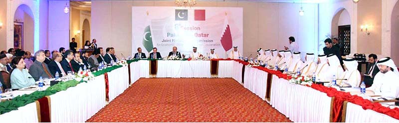 Delegations from Pakistan and Qatar attend the 6th Session of the Pakistan-Qatar Joint Ministerial Commission (JMC) in Islamabad, co-chaired by Federal Minister for Commerce, Jam Kamal Khan and Sheikh Faisal bin Thani bin Faisal Al Thani, Minister of Commerce and Industry of the State of Qatar